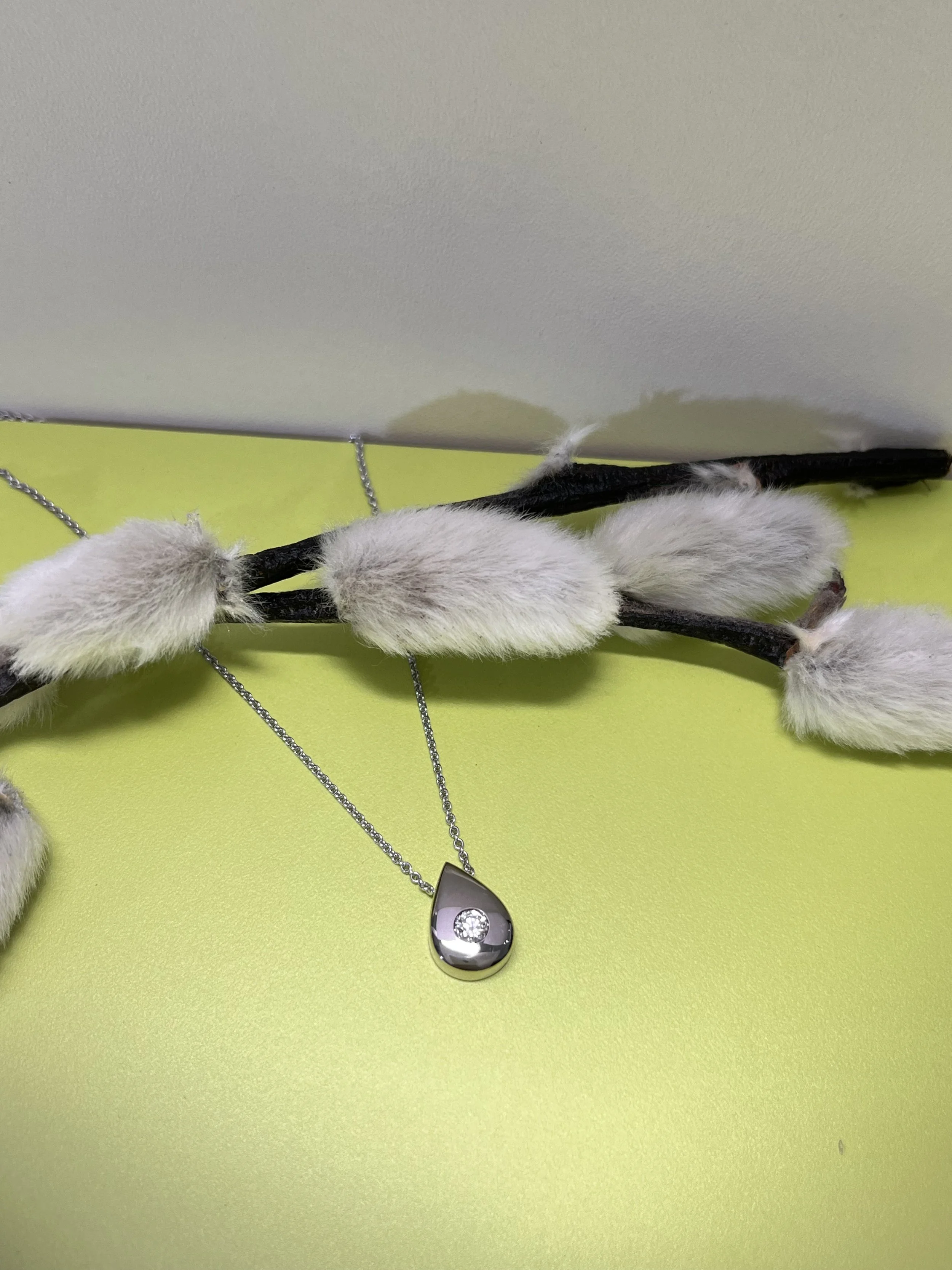 Anhänger in 585/- Weißgold mit einem Diamant aus Asche